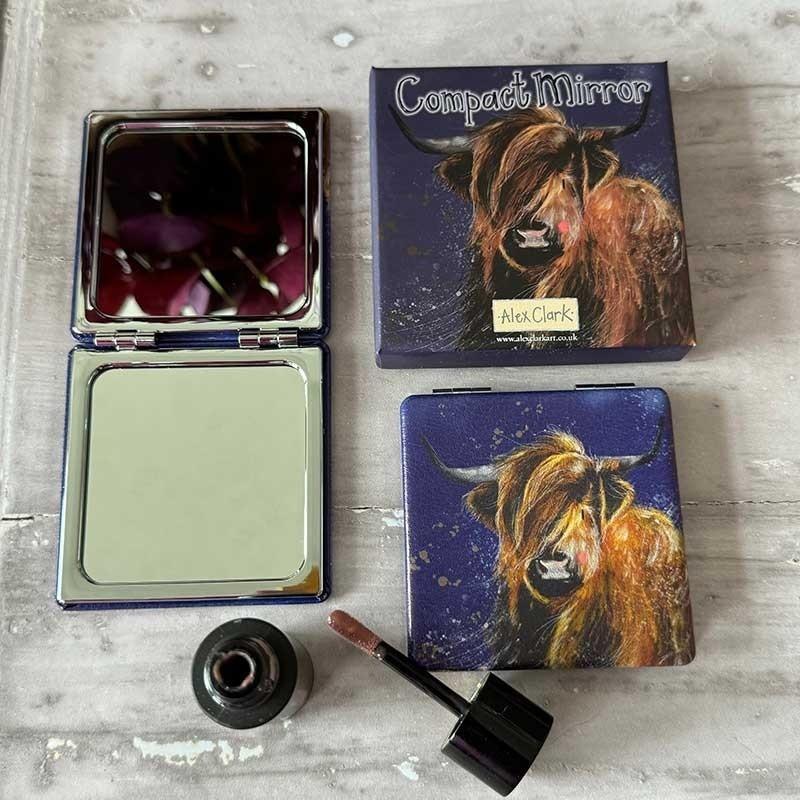 To śliczne kompaktowe lusterko jest na tyle poręczne, że zmieści się nawet w małej torebce bądź kieszeni. Zawiera dwie idealne do poprawek strony, w tym jedną powiększającą, która umożliwia precyzyjną aplikację. Zapakowane w ilustrowane pudełko prezentowe. Zapinane na zawiasy i ukryty magnes. Wykonane ze skóry wegańskiej, metalu i szkła. Rozmiar: 70 mm x 70 mm.