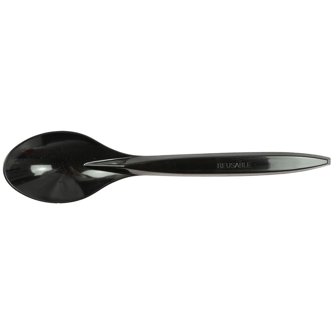 Łyżki wielorazowe z wytrzymałego tworzywa. Czarne wielorazowe łyżki, które doskonale łączą w sobie trwałość, lekkość i wygodę użytkowania. Wykonane z wysokiej jakości tworzywa sztucznego, są idealnym rozwiązaniem dla osób ceniących sobie praktyczne podejście do organizacji przyjęć oraz spotkań plenerowych. Cechy produktu: - solidne i lekkie - dzięki wytrzymałemu materiałowi nie łamią się łatwo, a ich ergonomiczny kształt sprawia, że są komfortowe w użytkowaniu, - wielokrotnego użytku - można je myć w zmywarce nawet 125 razy, co czyni je świetną alternatywą dla jednorazowych sztućców, - czarny kolor pasuje zarówno do codziennych posiłków, jak i innych okazji, - uniwersalne zastosowanie - sprawdzą się podczas grilla, garden party, pikników, a także na przyjęciach urodzinowych oraz imprezach plenerowych, - praktyczne w użyciu - idealne do serwowania różnego rodzaju dań, zarówno na zimno, jak i na ciepło. Dane techniczne: - długość łyżki: 18 cm, - materiał: tworzywo sztuczne wielokrotnego użytku, - kolor: czarny - ilość w opakowaniu: 100 sztuk.