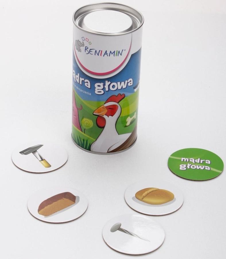 Edukacyjna gra pamięciowa ,,Mądra głowa"" To gra przygotowana z myślą o dzieciach zaczynających naukę w szkole podstawowej. Jej zadaniem jest pomoc w ćwiczeniu pamięci wzrokowej i spostrzegawczości, kojarzeniu wspólnych elementów i przedmiotów. Dodatkowo poszerza zasób słownictwa skojarzeń w języku polskim.