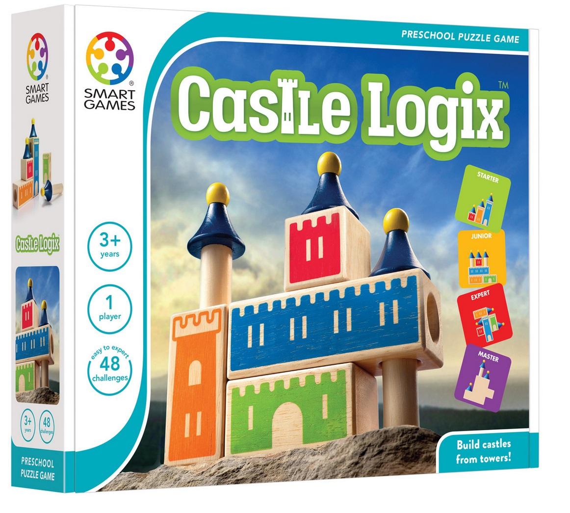 Witaj w ""CastleLogix"" - grze logicznej dla młodych budowniczych zamków! Dziecko wykorzystując duże, drewniane klocki podejmie próbę rozwiązania aż 48 zróżnicowanych zadań o narastającym poziomie trudności.