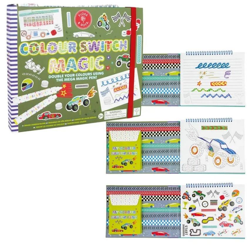 Zestaw Magia Kolorów to niekończąca się kreatywna zabawa! Dzięki magicznemu pisakowi możesz zamieniać kolory i tworzyć niesamowite wzory. Idealny do nauki pisania, rysowania i rozwijania zdolności manualnych! Każdy zestaw zawiera 10 stron do rysowania, 5 stron do kolorowania, 6 pisaków zmieniających kolor, 1 magiczny pisak, 5 stron w linie do pisania oraz 2 strony z naklejkami. Zestaw Magia Kolorów to nie tylko wyjątkowe pisaki, ale także książeczka pełna kreatywnej zabawy!