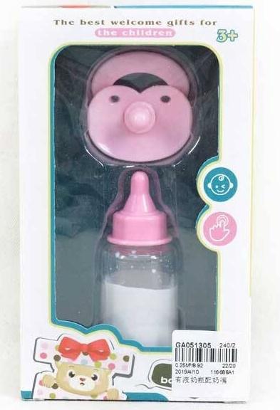 Butelka do karmiania bobasa. Po przechyleniu mleko w butelce stopniowo znika. Dodatkowe akcesoria: smoczek. Zabawka przeznaczona dla dzieci powyżej 3 roku życia. Produkt nie potrzebuje baterii.