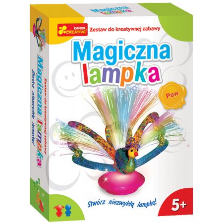 Zestaw do kreatywnej zabawy. Skład zestawu: tekturowe skrzydła i ogon przewody światłowodowe podstawka do lampki plastelina - 3 kolory przezroczyste koraliki - 3 kolory kryształki brokat - 3 kolory drucik szczegółowa instrukcja. Dla dzieci od lat 6.