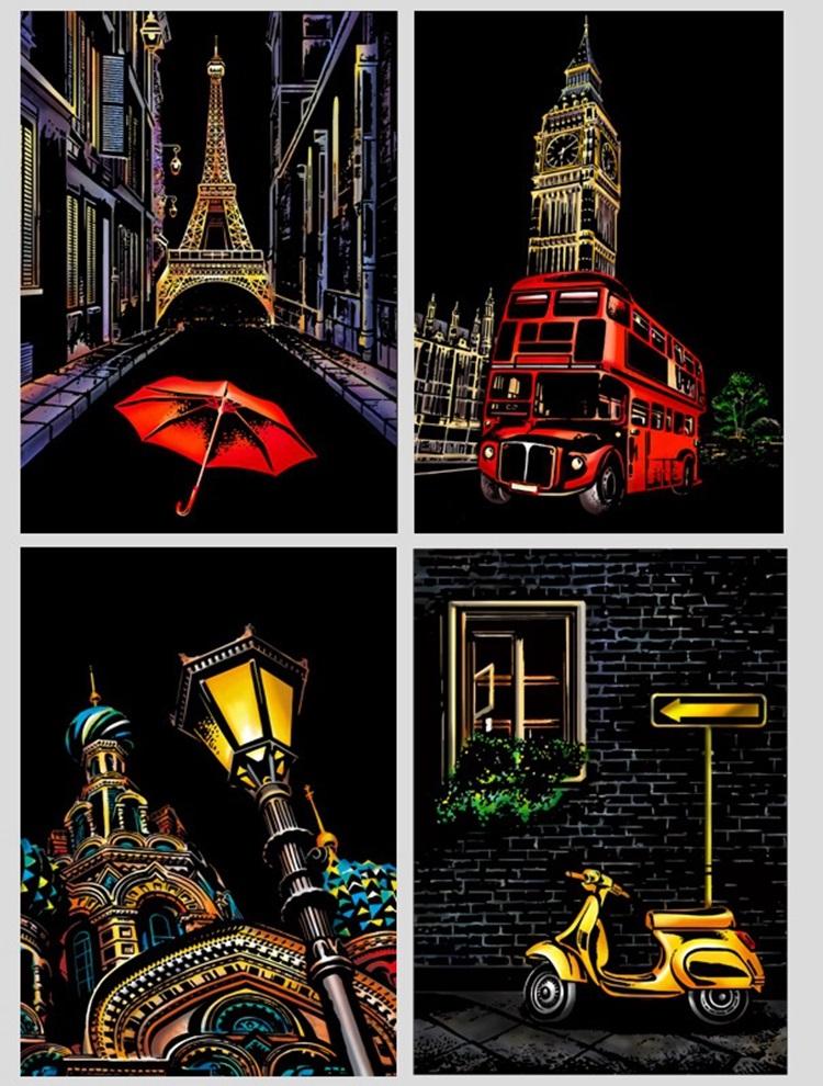 W obecnych czasach każdy ma szansę stworzyć własne dzieło za pomocą gotowych zestawów do zdrapania, w których zawarte zostały wszystkie niezbędne narzędzia do pracy, a także wzór mówiący, w jaki sposób powinien wyglądać obraz w efekcie. Możesz stworzyć teraz piękne dzieło, które następnie będzie miało szansę stać się prezentem dla bliskiej osoby lub zawiśnie na ścianie Twojego domu. Jeżeli jesteś osobą ceniącą sztukę, lubisz otaczać się pięknymi i wyjątkowymi przedmiotami oraz cieszy Cię, gdy możesz stworzyć je samodzielnie - taki zestaw jest właśnie dla Ciebie.