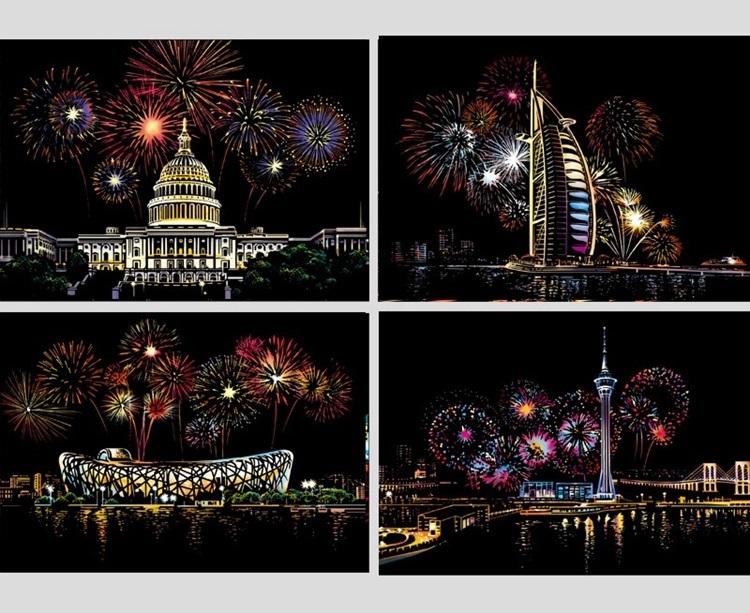Magiczna Zdrapka Fajerwerki 4 sztuki. 21x29,5cm