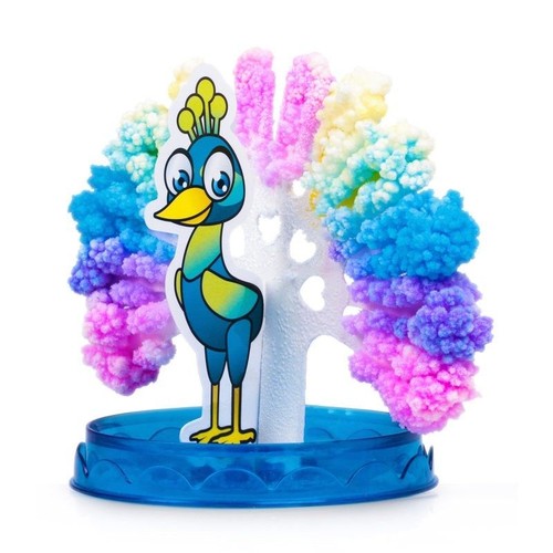 Piękny zestaw rosnących kryształków. W zestawie znajdziesz postać pawia, którego pióropusz wypełnią kolorowe pióra w postaci kryształków. Świetnie zestawione ze sobą kolory tworzą doskonałe wrażenie wizualne. Aby kryształy mogły się pojawić, należy rozpuścić mieszankę dołączoną do zestawu. Po kilku godzinach substancja zacznie krystalizować. Natomiast po upływie kilku dni kryształy w pełni rozwiną się i zachwycą wspaniałym pióropuszem. Paw sprawdzi się, jako zabawka dla dzieci, które lubią odkrywać nowe zjawiska i są ciekawe otaczającego świata. Ta cudowna zabawa rozwija cierpliwość oraz zdolność obserwacji. Jak najbardziej sprawdzi się również dla osób dorosłych. Polecana dla dzieci powyżej 10 roku życia.