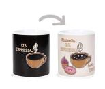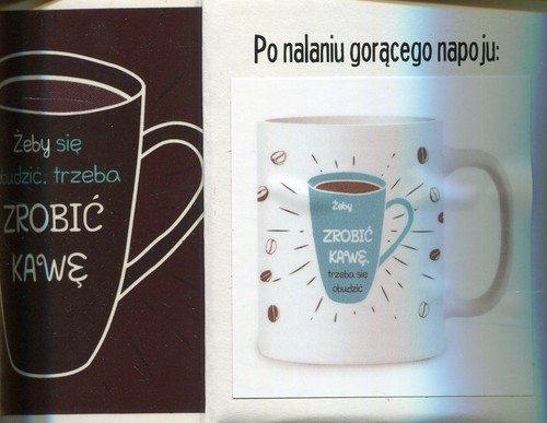 Magiczny kubek z napisem, który zmienia swoją kolorystykę pod wpływem nalania gorącego napoju.