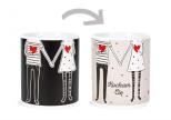 Pozornie tradycyjne kubki mają wyjątkowe motywy, które zmieniają się po nalaniu gorącego napoju. Ciepły kubek dowcipnie zmienia znaczenie tekstu lub ujawnia ukryty obraz. Kubek zapakowany jest w eleganckie kartonowe opakowanie.