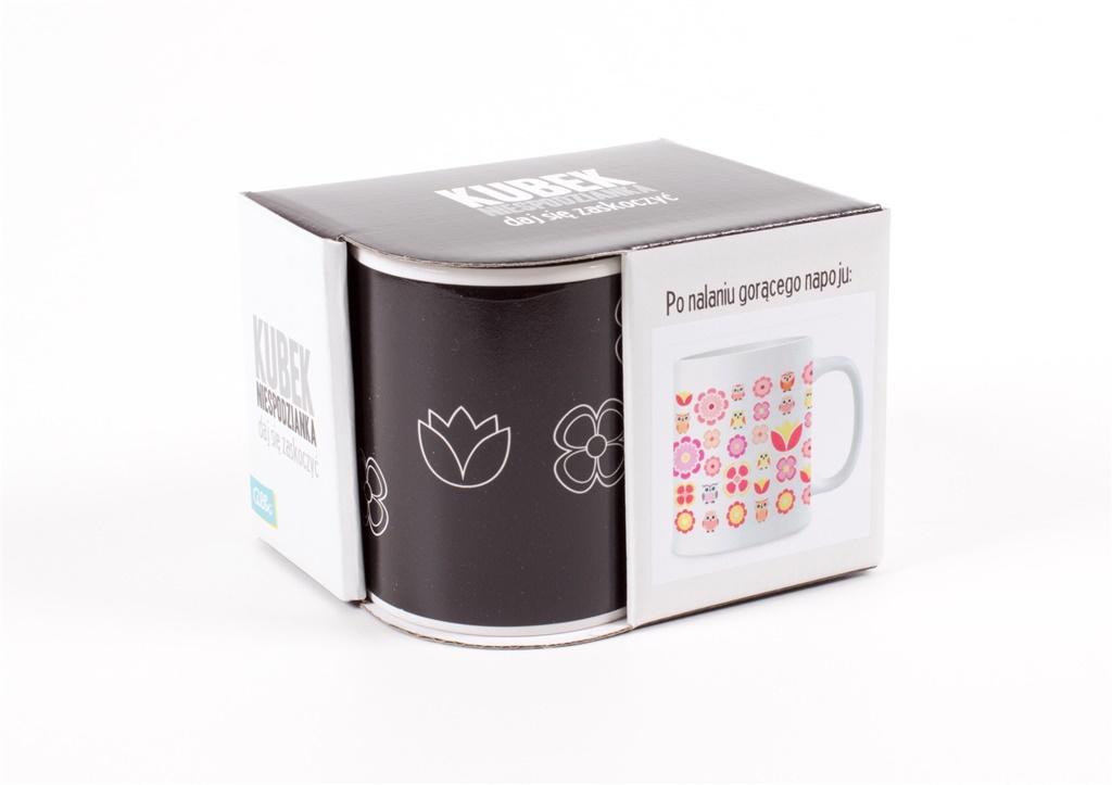 Kubek zmienia napis, kolor i grafikę pod wpływem ciepła. Opakowanie idealne na prezent.