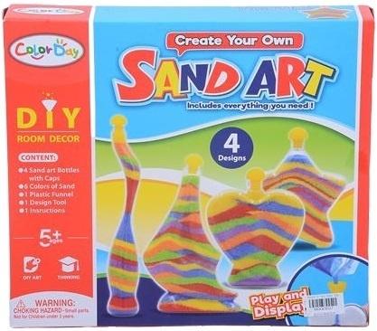 Odkryj radość tworzenia z zestawem "Color Day Create Your Own Sand Art", idealnym dla małych artystów i każdego, kto ceni sobie kreatywne spędzanie czasu. Ten kompletny zestaw DIY Sand Art umożliwia stworzenie zachwycających, wielobarwnych kompozycji z piasku, które staną się piękną ozdobą każdego wnętrza. W opakowaniu znajdziesz cztery butelki na piasek z zakrętkami o różnorodnych kształtach - od smukłych, po sercowate - sześć żywych kolorów piasku, praktyczny lejek do łatwego wsypywania, narzędzie do modelowania oraz szczegółowe instrukcje. Projektowanie własnych wzorów to doskonała zabawa rozwijająca wyobraźnię i zdolności manualne. Stworzone dzieła można od razu wystawić i cieszyć się ich unikalnym pięknem. Produkt przeznaczony dla dzieci w wieku 5 lat i starszych, z ostrzeżeniem o małych elementach - nieodpowiedni dla dzieci poniżej 3 lat.