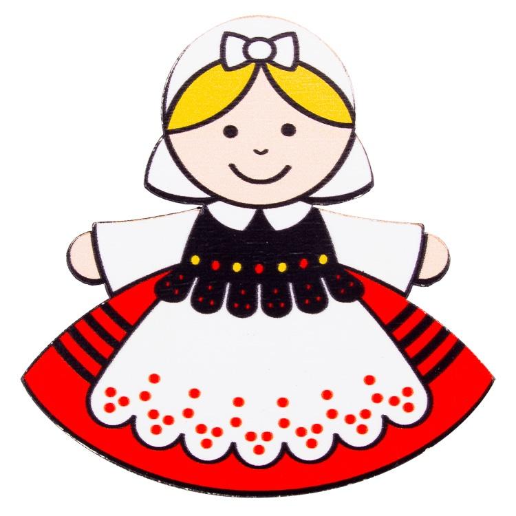 Ludowy magnes z Polski - FOLK - Rzeszowianka: w żywych kolorach wykonany z drewnianej sklejki,nadruk cyfrowy - zainspirowany tradycyjnym strojem rzeszowskim,zdobienia na folk magnesie stylizowane na ludowo,magnesy ludowe to oryginalna i drobna pamiątka z Polski