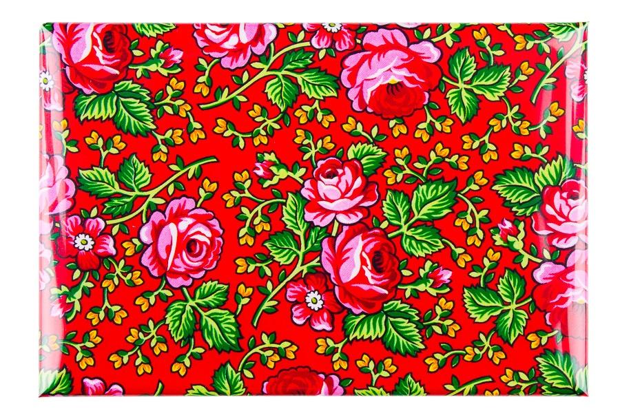 czerwony z kolorowymi kwiatami ludowymi,nadruk cyfrowy - zainspirowany tradycyjnymi wzorami góralskimi,zdobienia na folk magnesie stylizowane na ludowo,zapakowany w folijkę,magnesy ludowe to oryginalna i drobna pamiątka z Polski