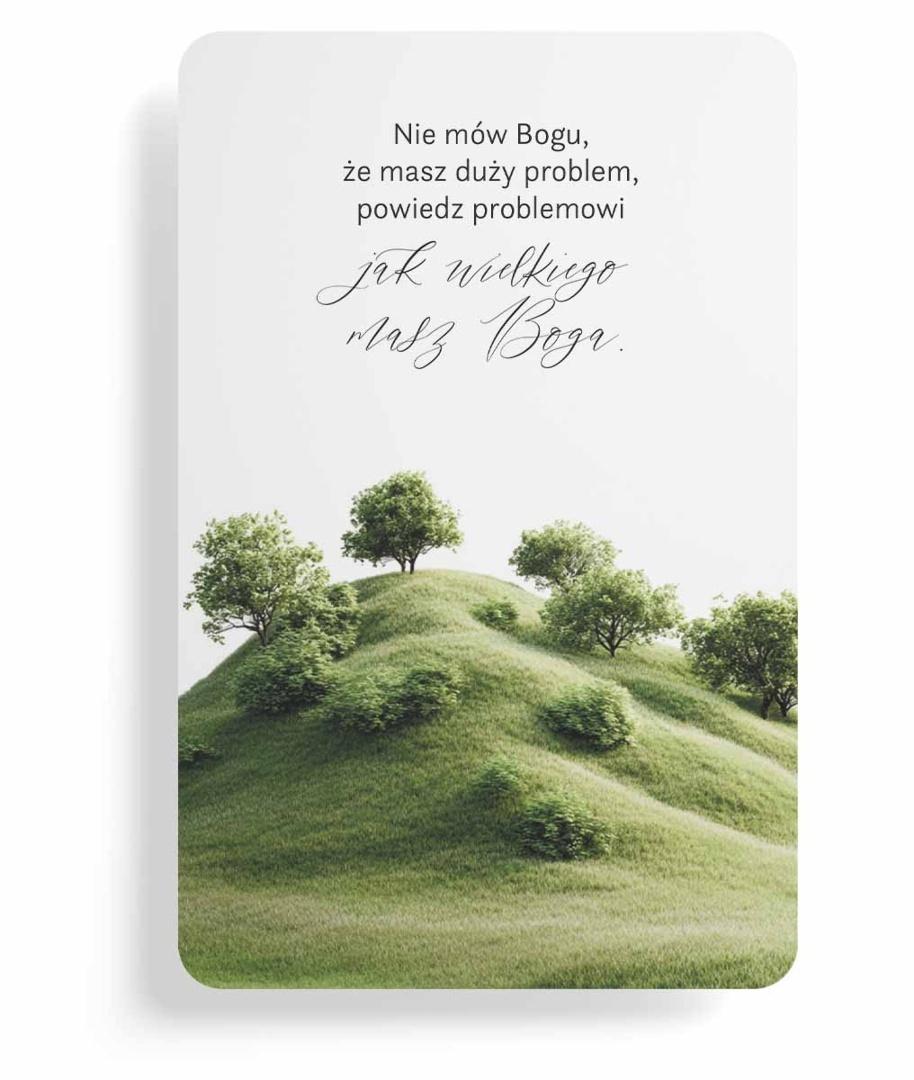 Piękny, inspirujący magnes z motywującym cytatem chrześcijańskim, przypominający o sile wiary i Bożej potędze. Minimalistyczny, elegancki magnes na lodówkę zachęca, by w trudnych chwilach patrzeć na problemy przez pryzmat mocy Boga, a nie własnych ograniczeń.
