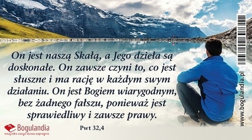 Magnes na lodówkę, na metalowe elementy, jak drzwi itp. tekst na magnesie: On jest naszą Skałą, a Jego dzieła są doskonałe. On zawsze czyni to, co jest słuszne i ma rację w każdym swym działaniu. On jest Bogiem wiarygodnym, bez żadnego fałszu, ponieważ jest sprawiedliwy i zawsze prawy. Pwt 32,4 Magnes posiada zaokrąglone krawędzie.