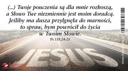 Magnes na lodówkę, na metalowe elementy, jak drzwi itp. tekst na magnesie: (...) Twoje pouczenia są dla mnie rozkoszą, a Słowo Twe niezmiennie jest moim doradcą. Jeśliby ma dusza przylgnęła do marności, to spraw, bym powrócił do życia w Twoim Słowie. Ps 119,24-25 Magnes posiada zaokrąglone krawędzie.