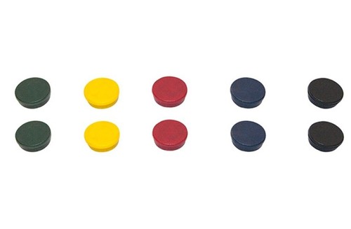 mocne magnesy do tablic magnetycznych nie rysują powierzchni magnetycznej utrzymują ciężar do 0,12kg średnica: 20mm 10 sztuki w j.s. mix kolorów