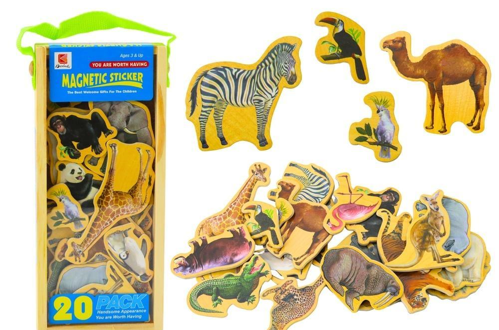 Zestaw Magnesy Drewniane Zwierzęta 20 Sztuk Kolorowe