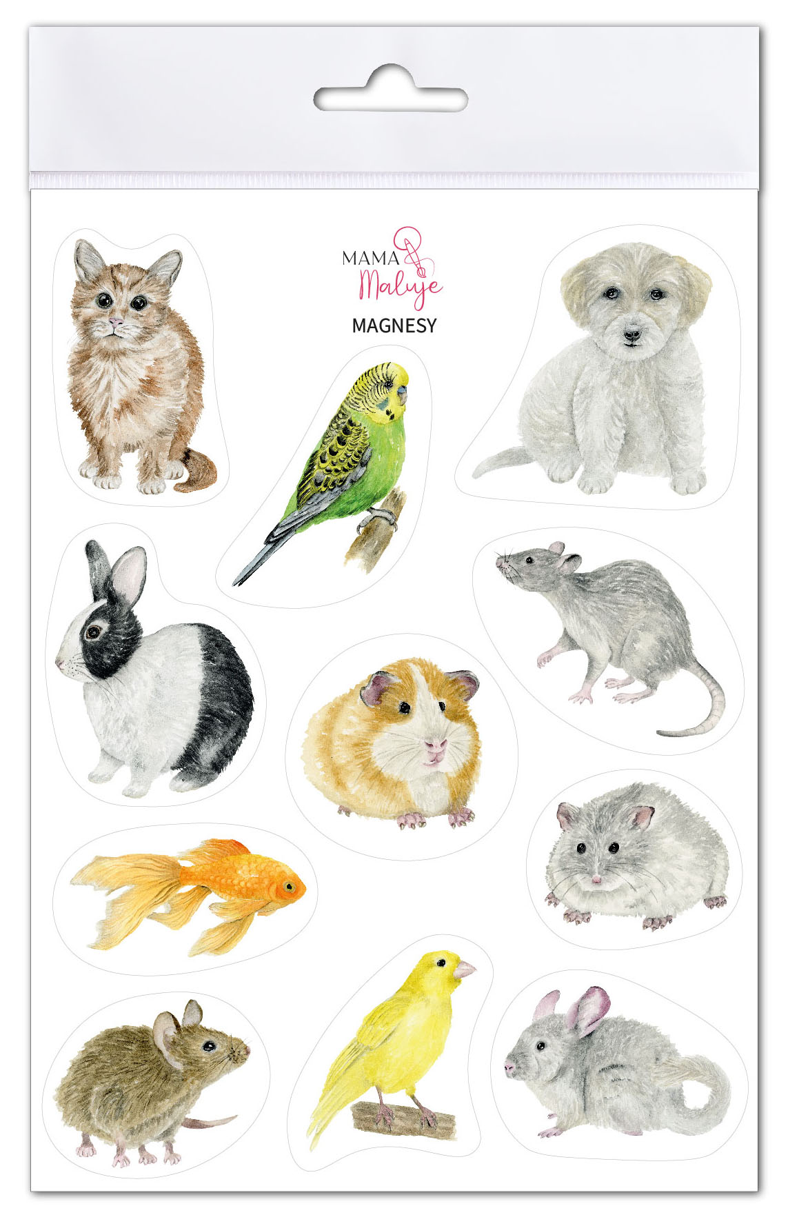 Magnesy przedstawiają wizerunki najbardziej lubianych przez dzieci zwierząt domowych.