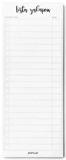 • Lista pasuje do pola ""Lista zakupów"" na planerze posiłków o szerokości 40cm lub 50cm