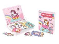 Magnetyczna Układanka Książka Jednorożce Puzzle Karty Zabawka rozwinie swoje funkcje poznawcze oraz nauczą się kreatywnego myślenia, koncentracji i samodzielności. W zestawie znajdują się karty przedstawiające słodkie jednorożce, zadaniem malucha jest ułożenie magnetycznych elementów według wzoru, aby całkowicie odwzorować dany obrazek. Puzzle będą służyć dziecku przez długi czas, dzięki możliwości tworzenia najróżniejszych, kreatywnych obrazków. Pisak pozwoli dopisać lub dorysować swoje elementy. Rozbudzi w dziecku zmysł artystyczny i będzie ćwiczyć logiczne myślenie. Zestaw składa się z 39 elementów. Opakowanie jest sztywne w formie książki, a plansza magnetyczna to wewnętrzna strona okładki. Elementy zestawu: - 6 dwustronnych kart z przykładowymi zwierzętami - magnesy - książka magnetyczna - pisak z gumką Wymiary opakowania: 27 cm x 21 cm x 4 cm Produkt przeznaczony jest dla dzieci powyżej 3 roku życia. Zabawka jest zgodna z normą EN71.