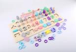 Jedna plansza – wiele możliwości. Układanka została wykonana z drewna, w pięknej pastelowej kolorystyce.