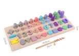 Na podstawce zostało umieszczonych również 10 pionowych patyczków, na każdym z nich znajdują się kolorowe krążki, ich ilość odpowiada cyfrze, umieszonej na sorterze.