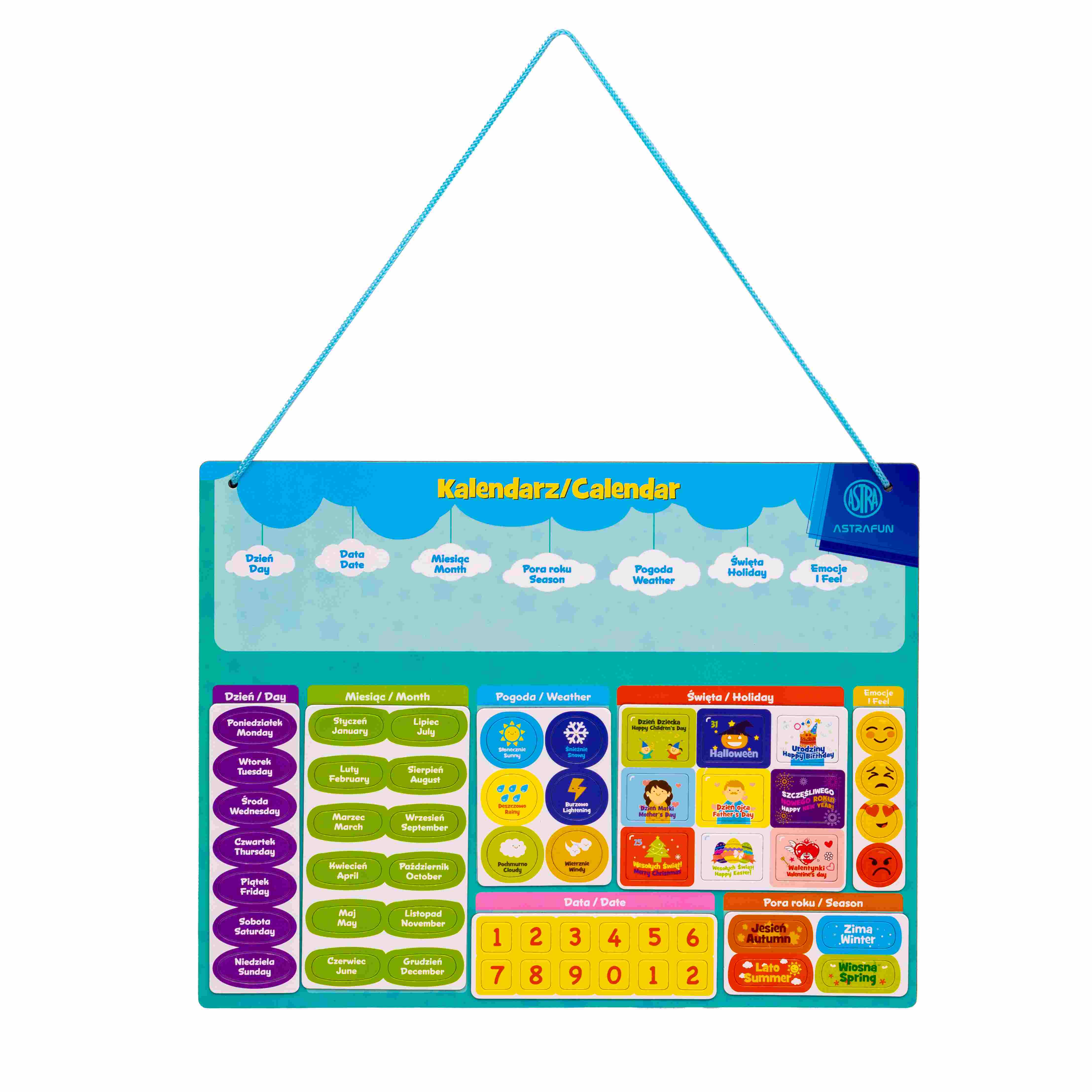 Dzięki magnetycznym kartom dzieci mogą łatwo zmieniać daty, śledzić pogodę, sezony oraz wyrażać swoje emocje.