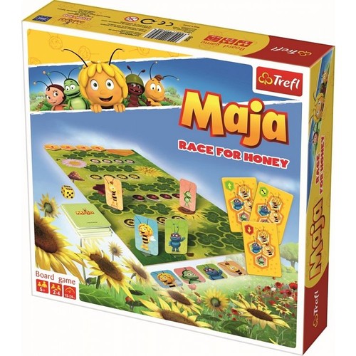 Witajcie na makowej łące, gdzie na pszczółkę Maję i jej przyjaciół codziennie czekają niesamowite przygody. Tym razem królowa pszczół postanowiła zorganizować zawody, w których zadaniem uczestników będzie zebranie czterech rodzajów pyłku i jak najszybsze dotarcie z nim do ula. Na śmiałków czekają wyjątkowe nagrody - plastry pysznego miodu! Do biegu, gotowi, start! Zawartość: plansza, 4 żetony postaci, 4 pionki postaci, 4 podstawki pod pionki, 16 żetonów pyłków kwiatowych, 4 plastry miodu, 55 kart ruchu, kostka, instrukcja. Gra dla dzieci w wieku 4+