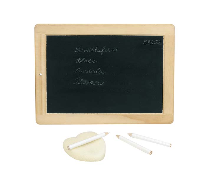 Dwustronna tablica do pisania kredą lub kredkami. W zestawie znajduje się także gąbka. 3+