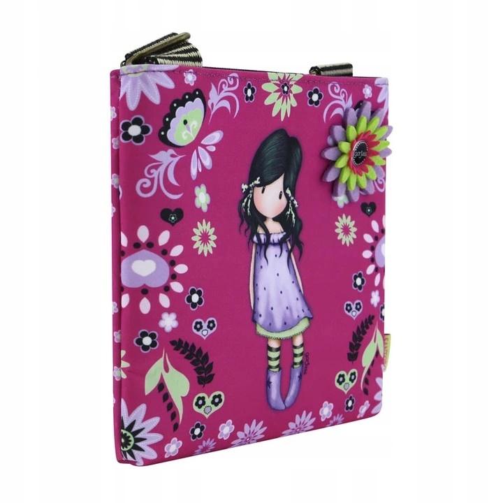 Bardzo poręczna torba z wizerunkiem dziewczynki Gorjuss, w odcieniach magenty, bzu i limonki.