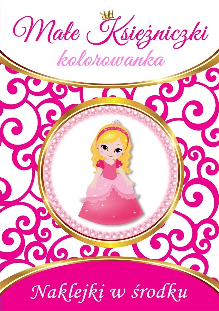 Małe Księżniczki - książeczka do kolorowania z zadaniami dla dzieci. W środku duża wkładka z naklejkami