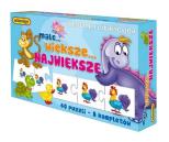 Zestaw składa się z 40 elementów (8 kompletów po 5 puzzli). Zadaniem dzieci jest ułożenie zwierzątek we właściwej kolejności - od najmniejszego do największego. Tworzenie szeregów pozwoli Twojemu dziecku na nabycie pierwszych matematycznych umiejętności oraz zapozna je z nowymi pojęciami: najmniejszy, mniejszy, duży, większy, największy... Liczba graczy: 1-4 Wiek: 3+