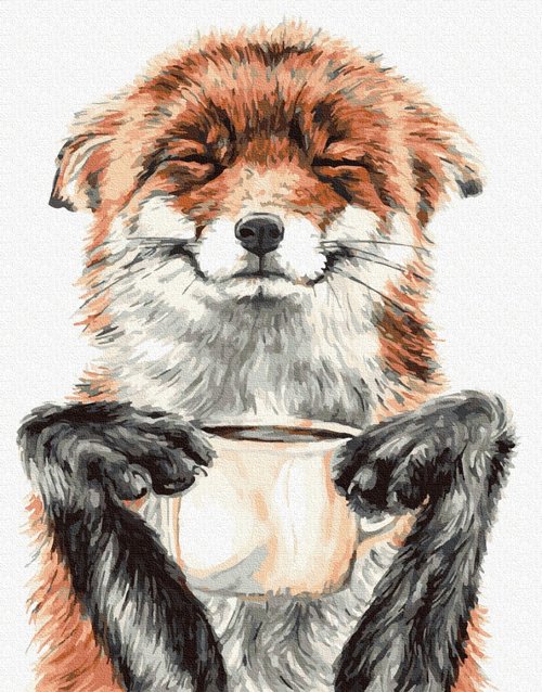 Malowanie po numerach 30x40cm Lis z filiżanką kawy