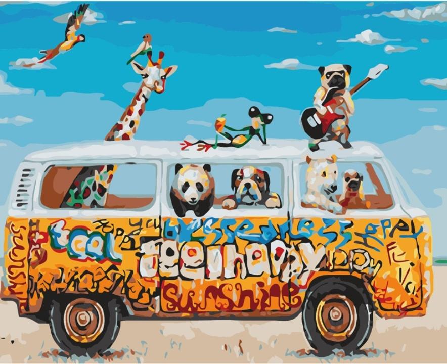 Malowanie po numerach 40x50cm Zwierzątka w busie