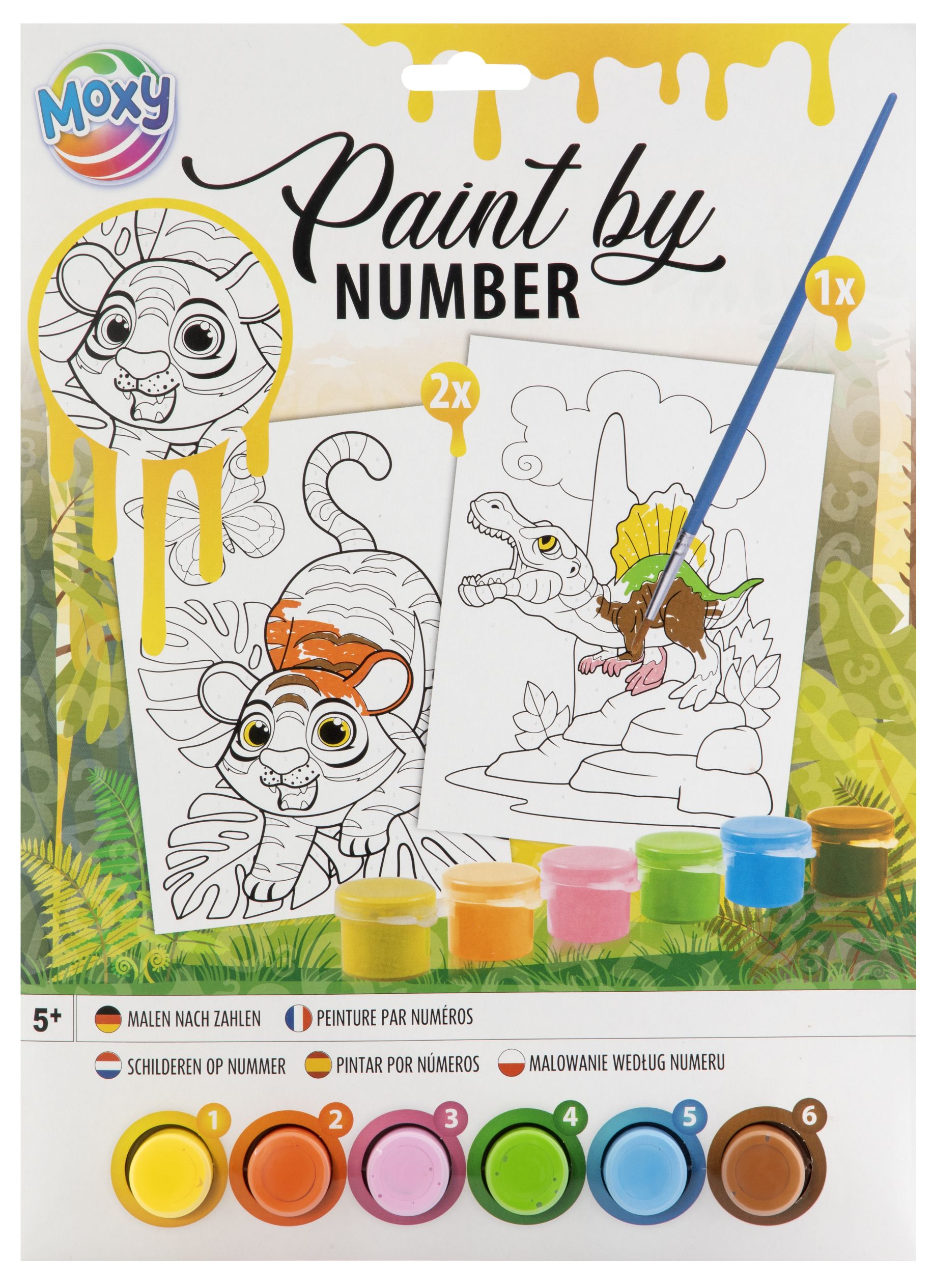 2 x arkusz do malowania w formacie A4 + 6 farb + pędzelek. Wymiary: 21 x 29.7 cm