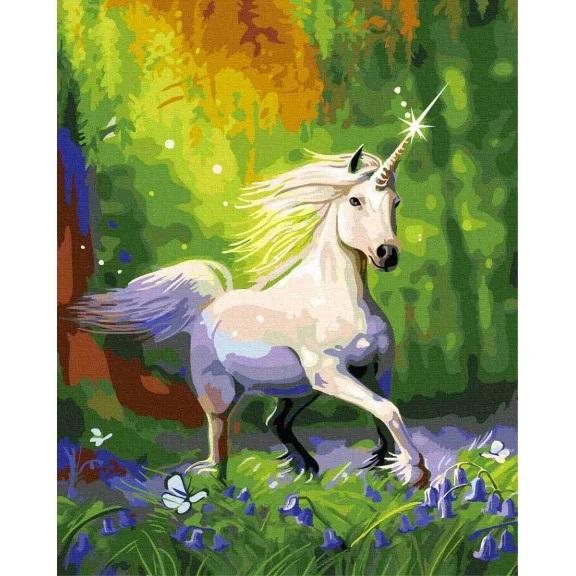 Malowanie po numerach - Biały jednorożec 40x50cm