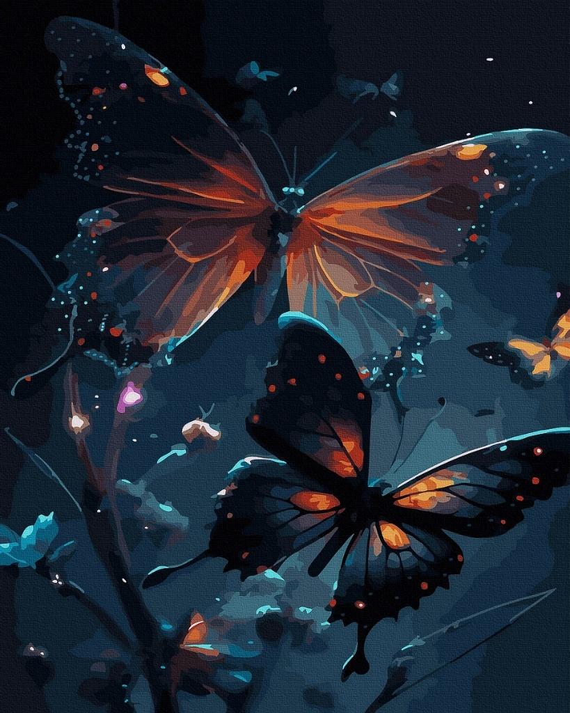 Malowanie po numerach czarne płótno - Nocne Motyle