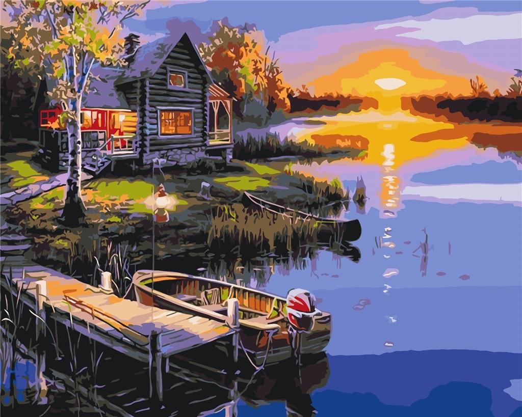Malowanie po numerach - Dom nad jeziorem 40x50cm