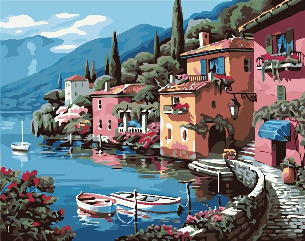 Malowanie po numerach - Domostwa na brzegu 40x50cm