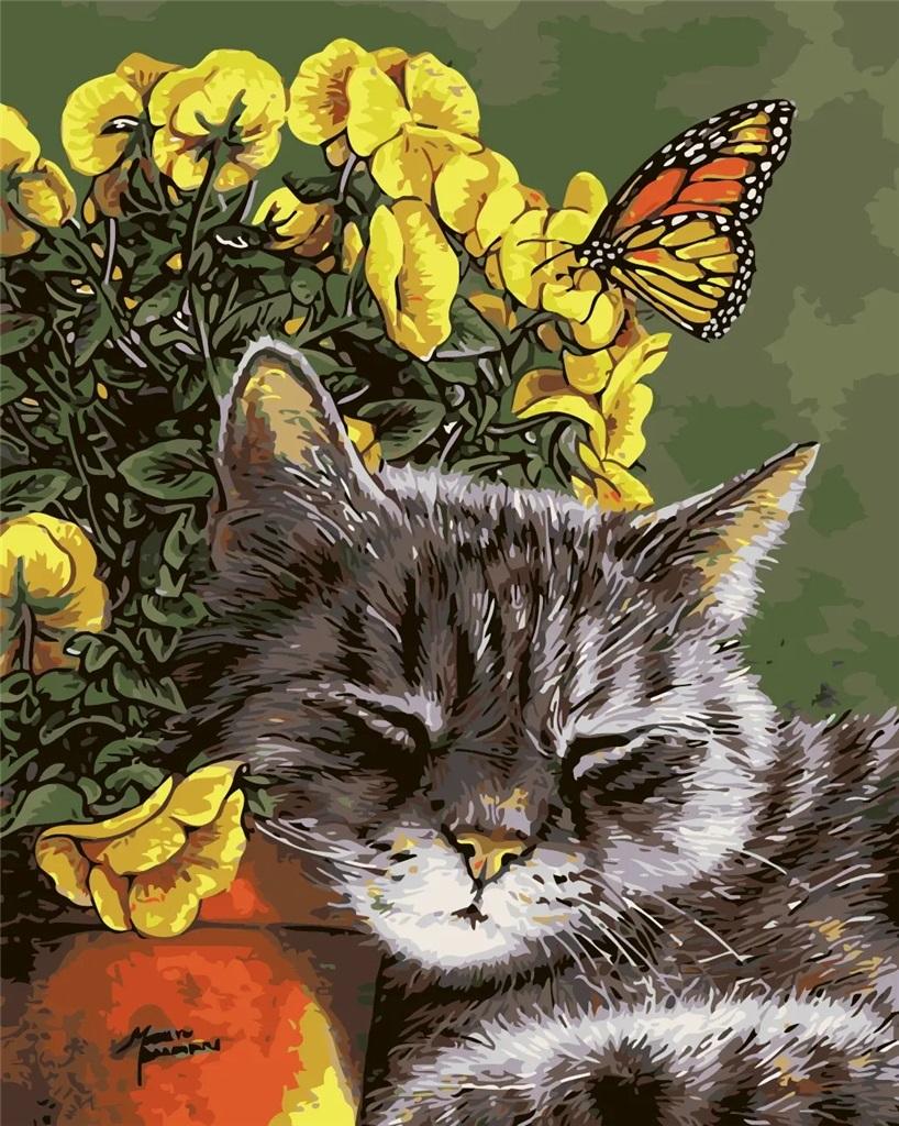 Malowanie po numerach - Drzemiący kotek 40x50cm