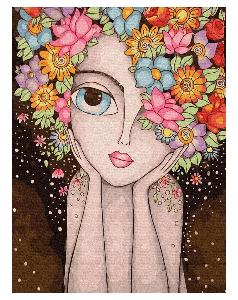 Malowanie po numerach - Dziewczyna-kwiat 40x50cm