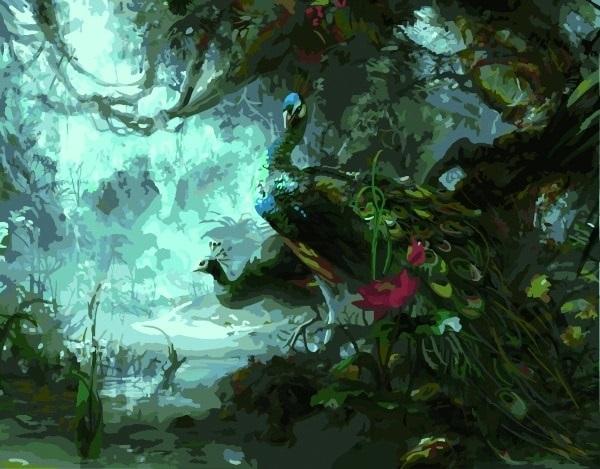 Malowanie po numerach - Dzikie pawie 30x40cm