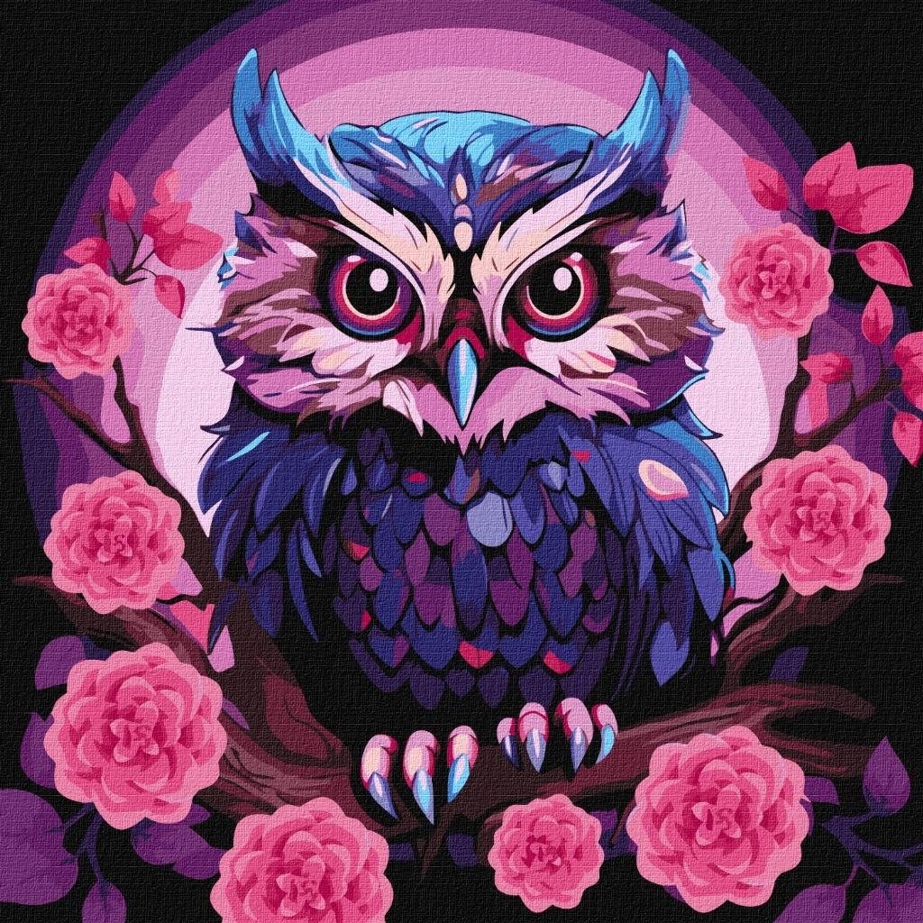 Malowanie po numerach - Fioletowa sowa 40x40cm