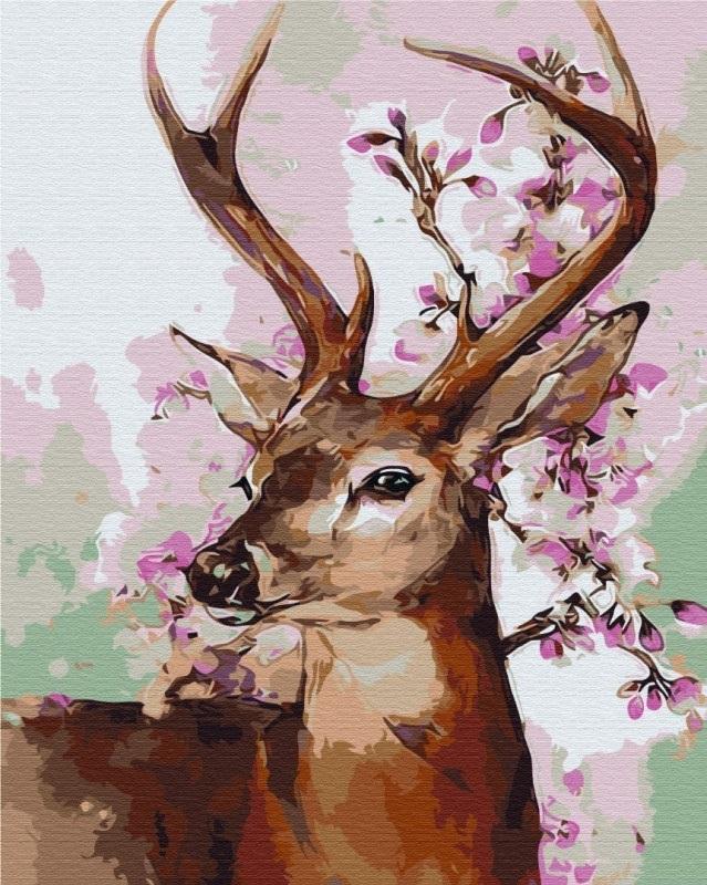 Malowanie po numerach Jeleń i kwiaty wiśni 40x50cm