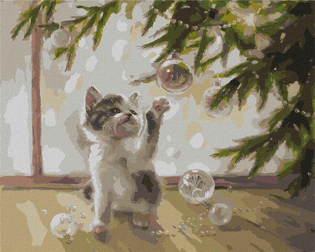 Malowanie po numerach - Kociak i bombki 40x50cm