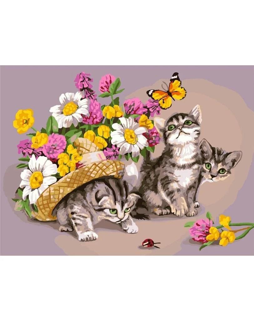 Malowanie po numerach - Kocięta w kwiatach 40x50cm