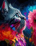 Malowanie po numerach - Kot w kwiatach 40x50 cm