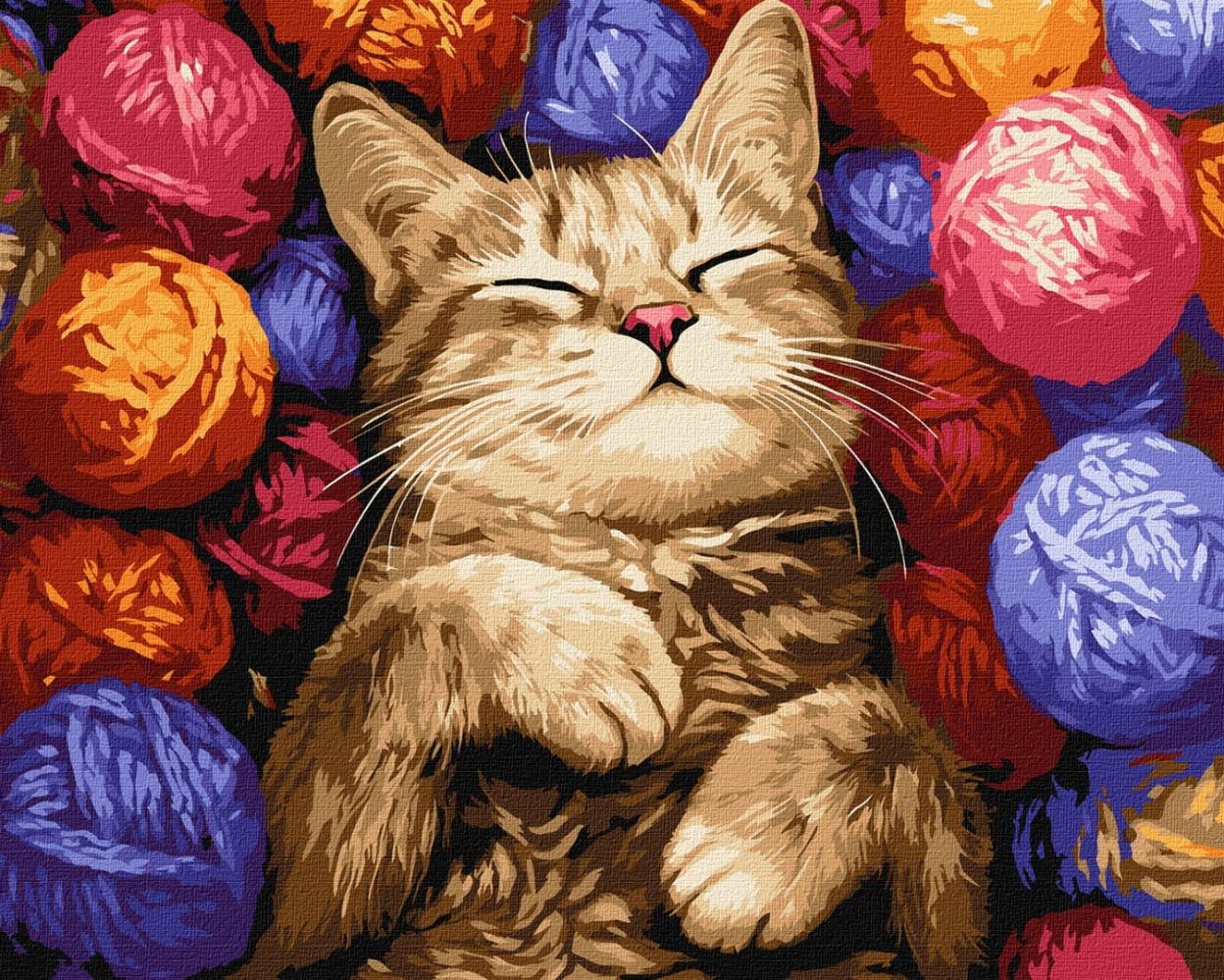 Malowanie po numerach - Kot w plątaninie 40x50cm