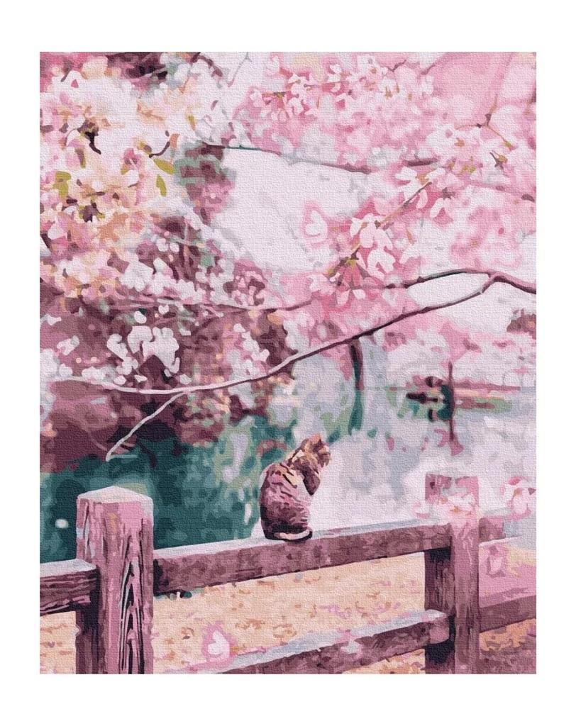 Malowanie po numerach - Kot w sakurze 40x50cm