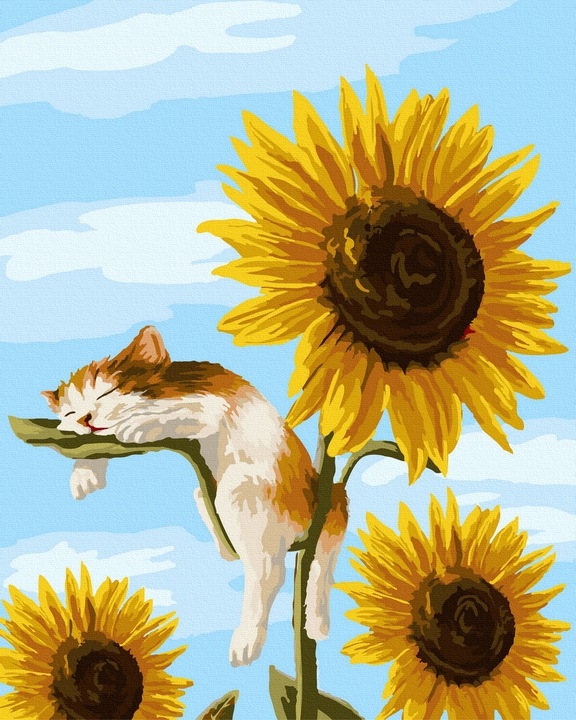 Malowanie po numerach Kotek w słonecznikach